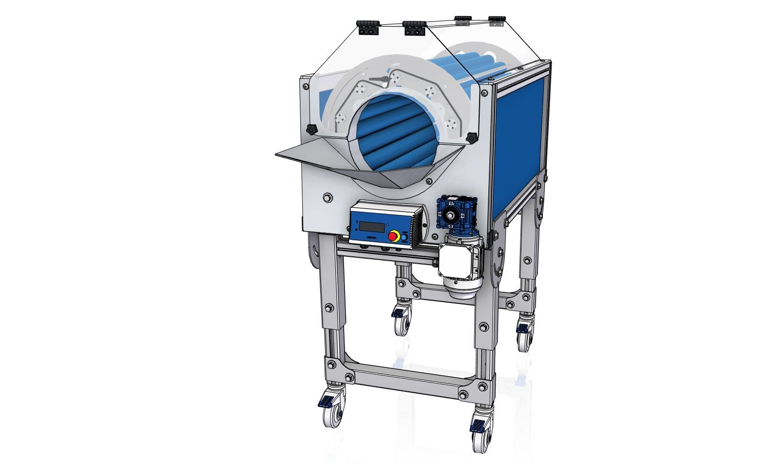 El CM (Mezclador) es un mezclador mecánico de piezas plásticas, diseñado para homogeneizar piezas procedentes de varias cavidades, moldes o líneas, antes de procesos como embalaje, contaje o inspección.
